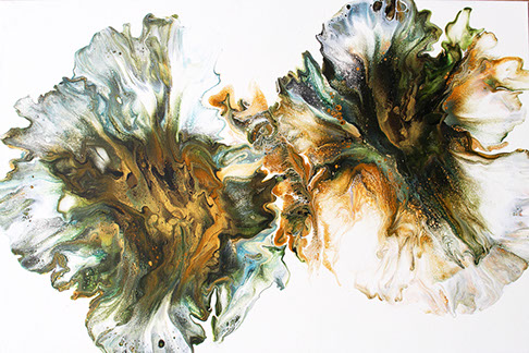 At first glance my art appears to be merely abstract, but upon careful visual interaction, one cannot help but feel the soothing peacefulness that emanates from the canvas. The energy, motion, and purity of this acrylic flow technique is truly remarkable. The paintings consist of many layers of paint, each creating it’s own flowing abstract surface left open to interpretation by the viewer.