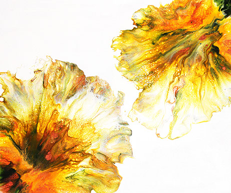Fluid art has become my passion and continues to evolve as each unique painting develops. Fun, (yet sometimes frustrating) it’s almost impossible to create the same pour twice. The method and techniques involves mixing and pouring a palette of perfect color combinations of acrylic paint – swirling, blowing and heating into each other to form intricate patterns and shapes. Finally, an addition of a clear resin medium, levels and hardens to a beautiful glossy finish.